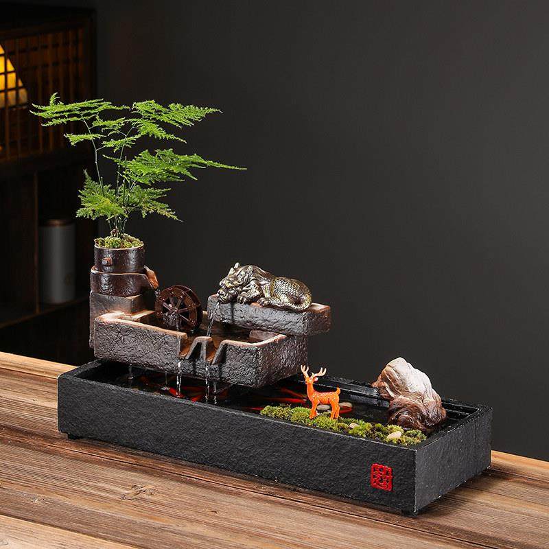 循环流水生财鱼缸摆件水车客厅办公室风水轮水晶球装饰品开业礼品
