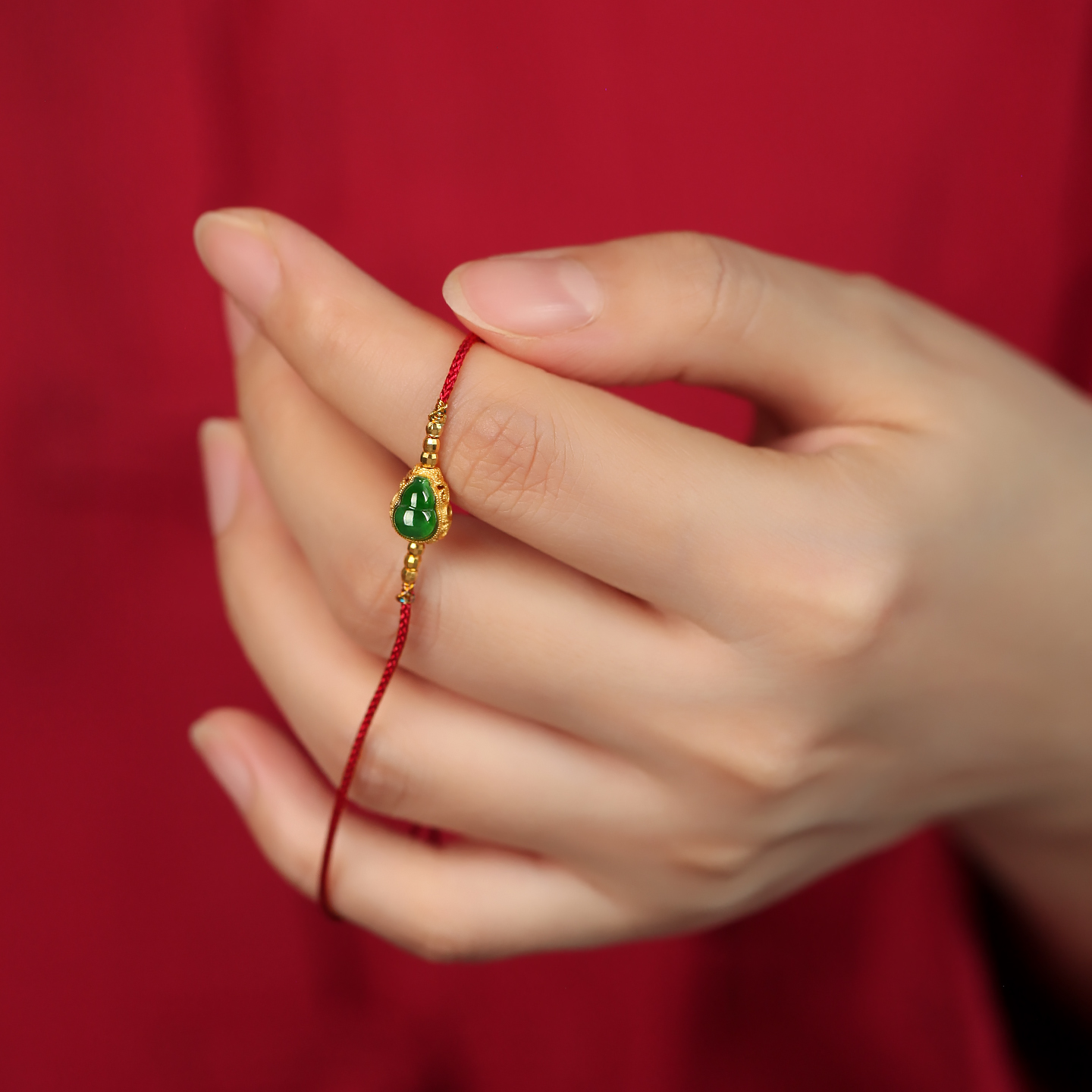 闺蜜小众天然翡翠葫芦红绳红色纯银手链女生本命年编织绳手绳好运