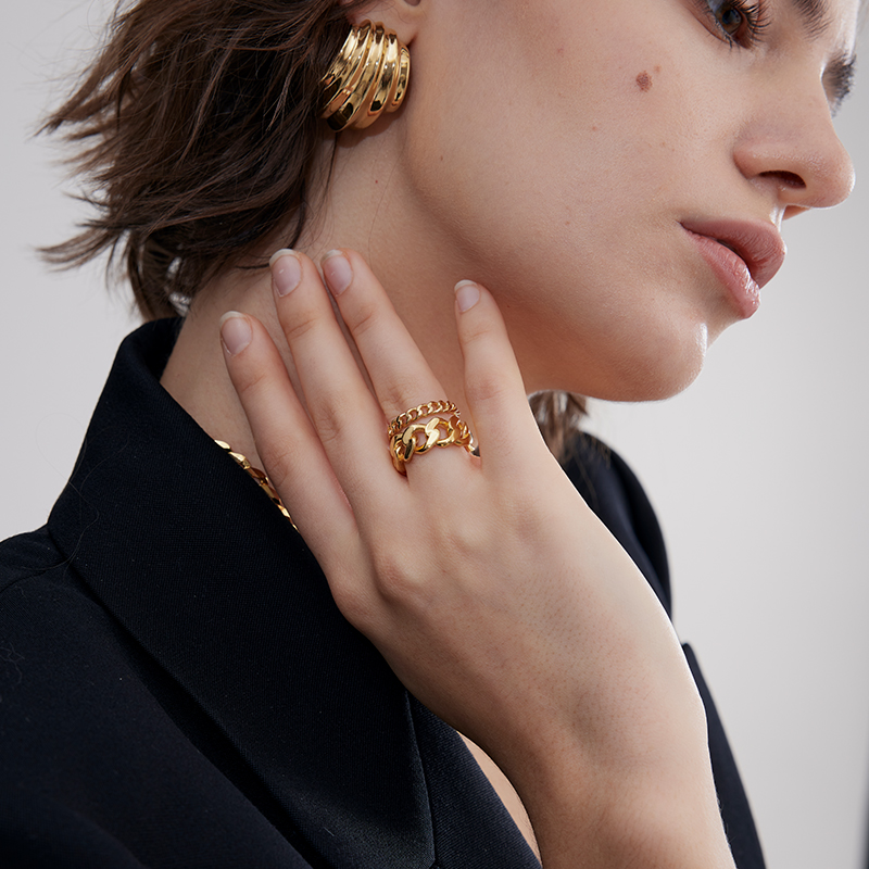 Louve小众品牌Cuban古巴纯银镀金戒指 情侣礼物男女款个性戒指