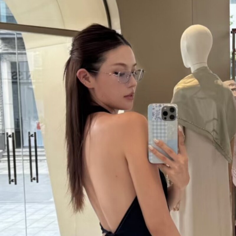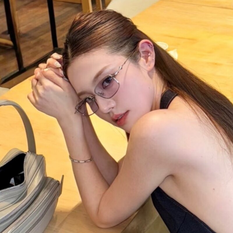2025新款墨镜金属方框蓝色gm太阳眼镜街拍高级网感防紫外线欧美风