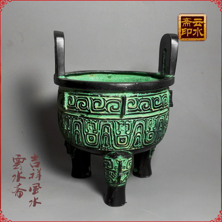 青铜器仿古摆件圆克鼎可做香炉三足鼎家居装饰品风水古玩