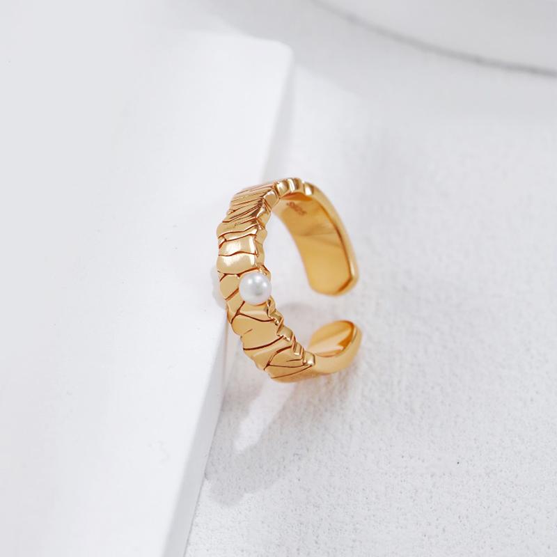 M0LLY慕礼 复古金色裂纹珍珠戒指S925银时尚轻奢百搭小众戒指