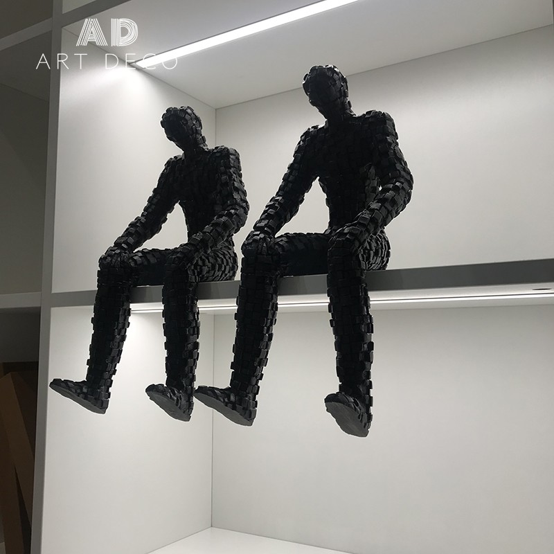 黑白色人物摆件现代极简约寝室样板间桌面坐着马赛克人物树脂饰品