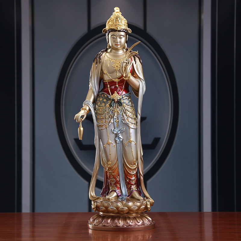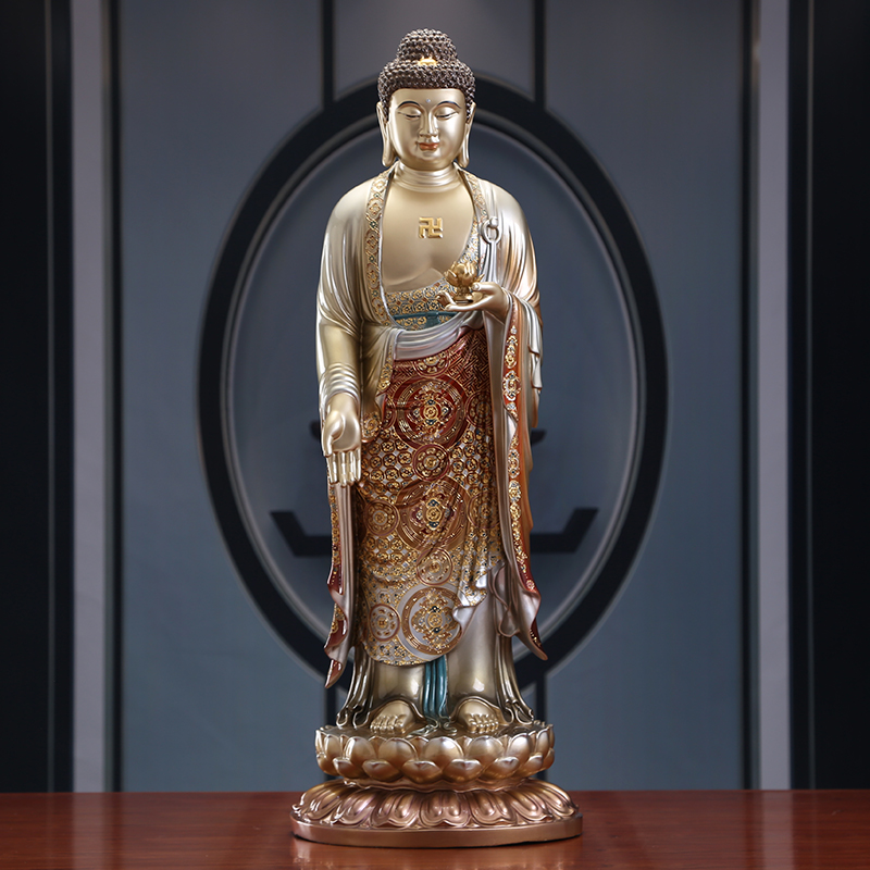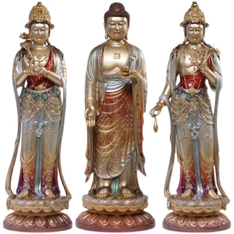 纯铜西方三圣摆件站像供奉家用阿弥陀佛观音佛像大势至菩萨珐琅彩