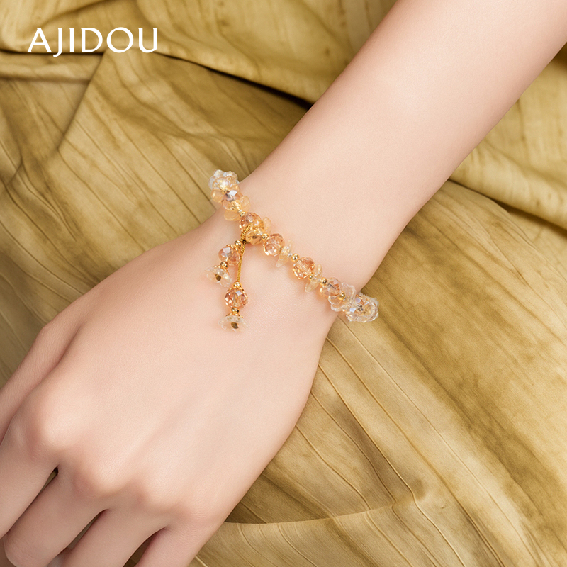 阿吉豆AJIDOU手链女款时尚水晶手串简约小众轻奢黄色串珠轻奢手饰