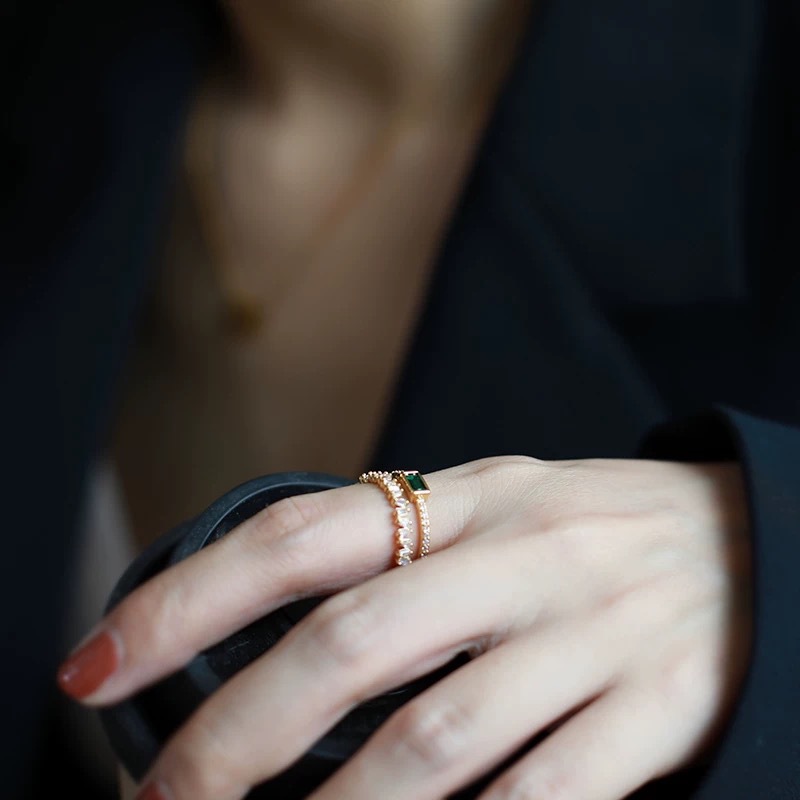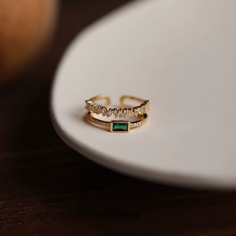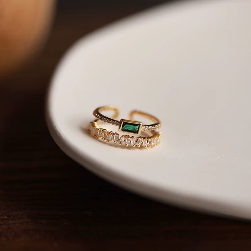 复古双层戒指女小众设计墨绿色锆石指环时尚个性高级感食指新款潮