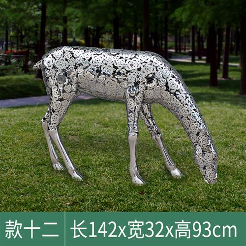 不锈钢切面鹿雕塑摆件户外玻璃钢梅花鹿公园景观酒店房产大厅装饰