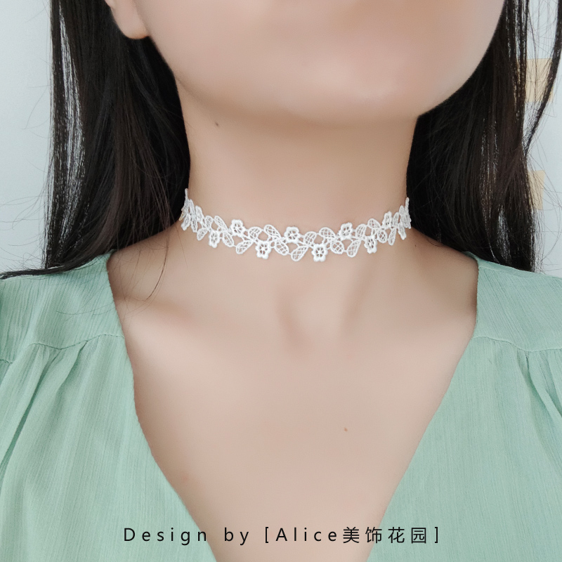 Alice花朵树叶蕾丝宽款choker超仙白色项圈女颈带锁骨链chocker