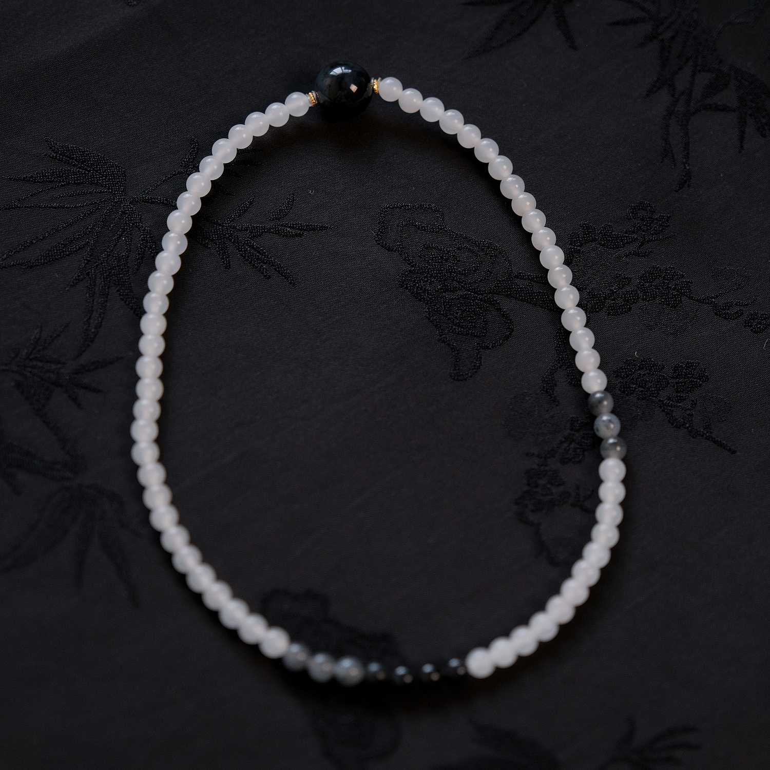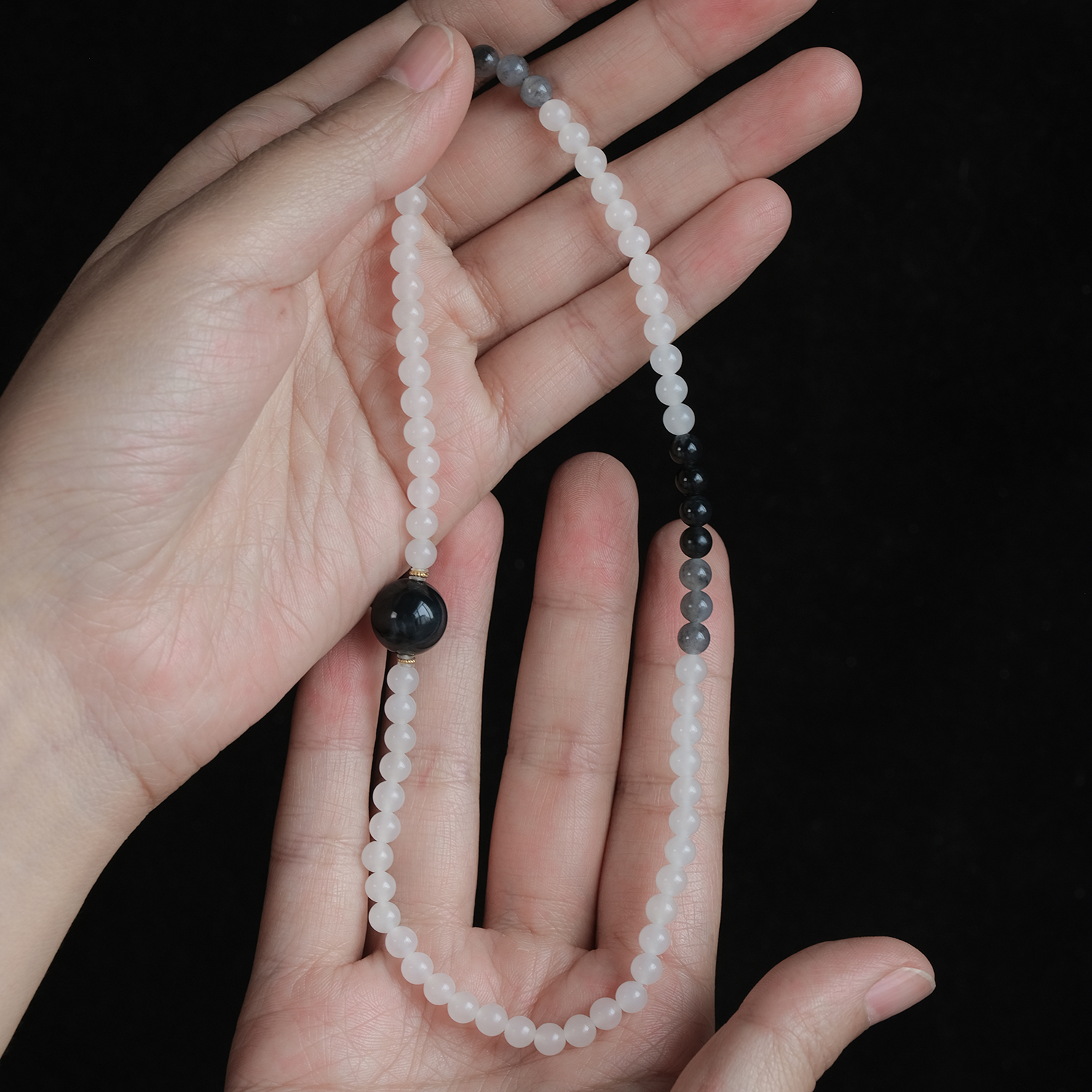 远家天然和田玉墨云间青花双圈手串5mm墨玉籽料白玉青海料Y-892限