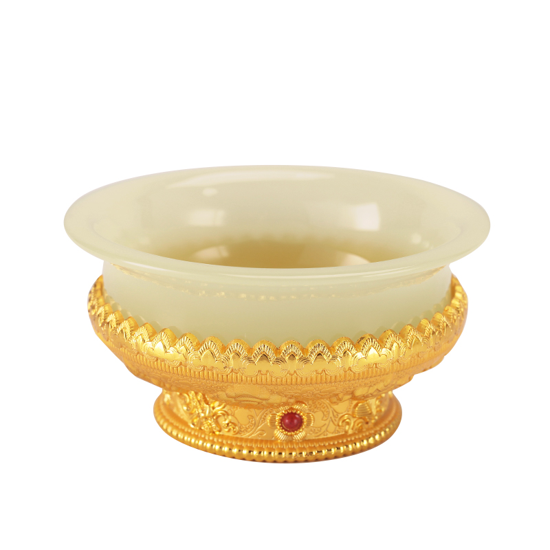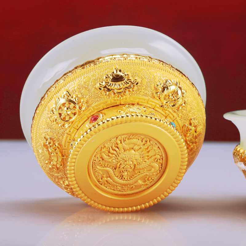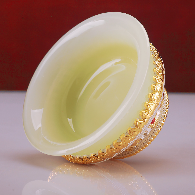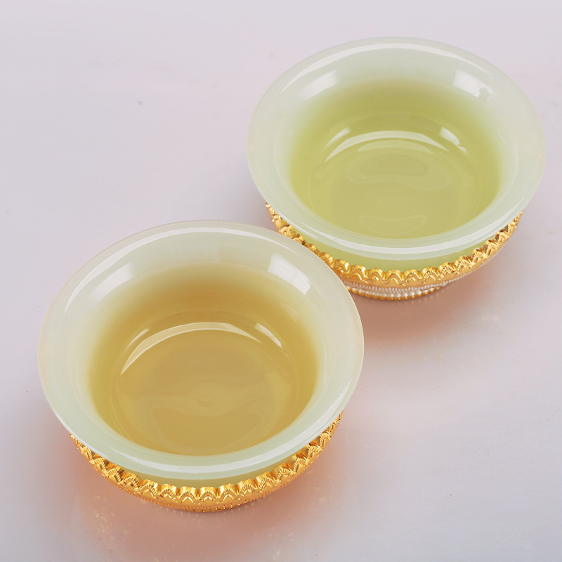 古法仿玉供水碗鎏金鎏银八吉祥龙碗糌粑碗家用供奉摆件透明供水杯