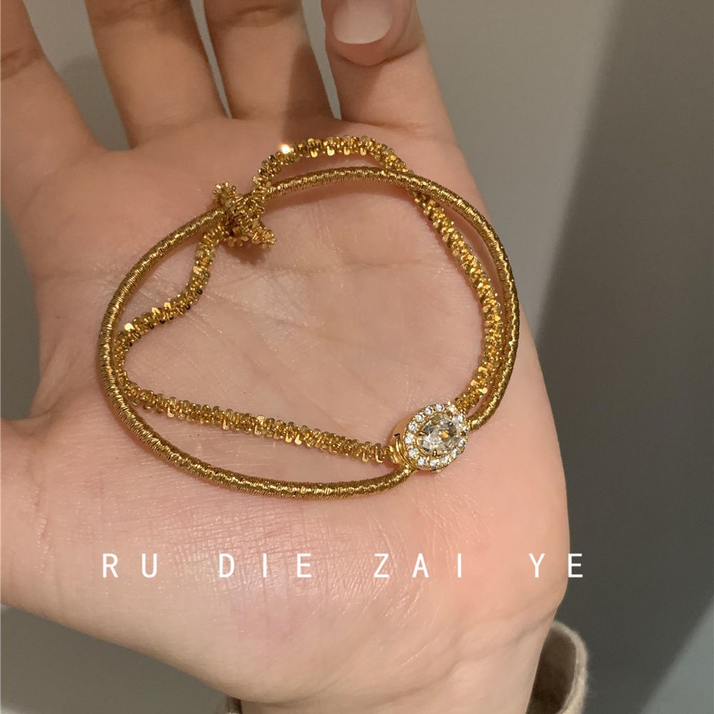 双层璀璨金丝手镯女2025新款爆款轻奢小众高级感奢华复古拉丝手链