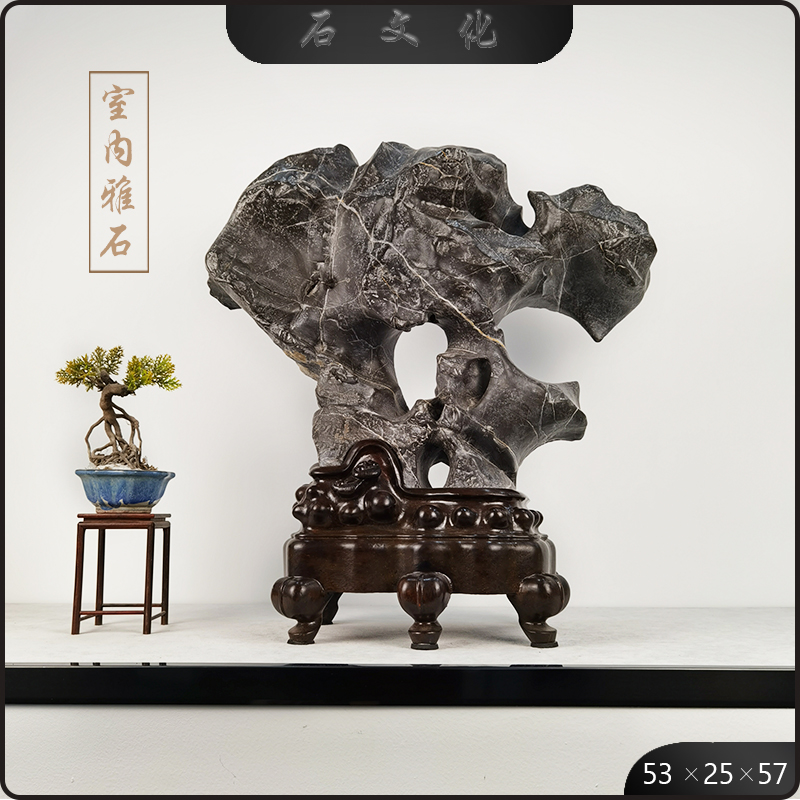 太湖石摆件天然原石带底座灵璧石客厅摆件办公室奇石装饰小摆件