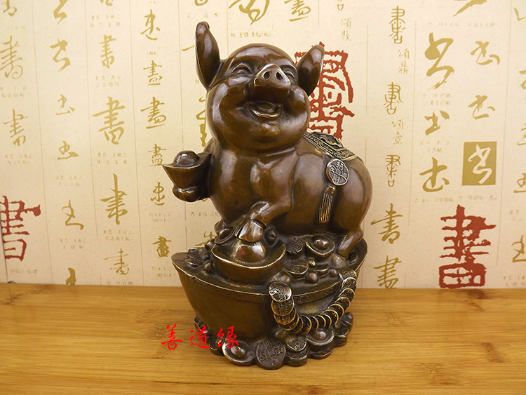 纯铜猪摆件铜元宝招财猪发财猪福猪生肖猪铜猪风水金钱猪摆设黄铜