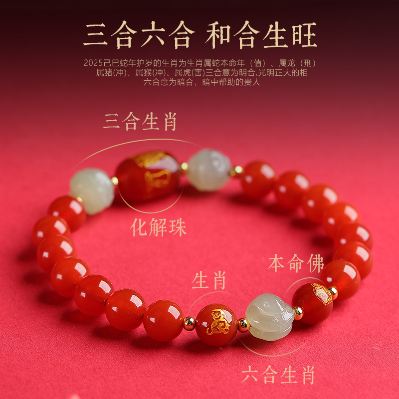 马年本命年手链女红玛瑙三合六合手串属马的吉祥佩戴物护身符礼物
