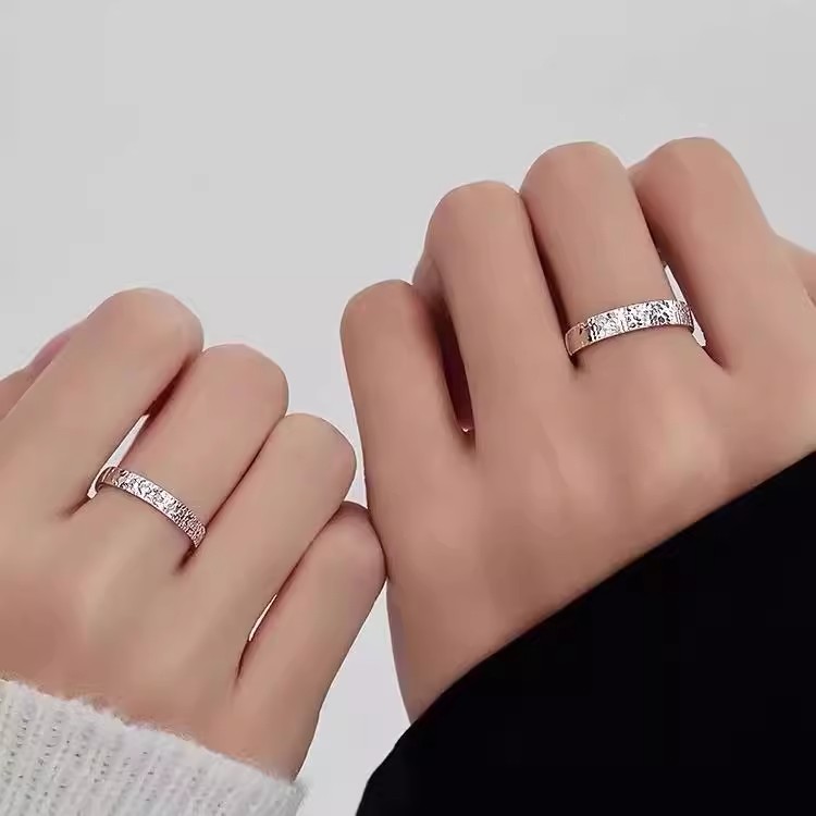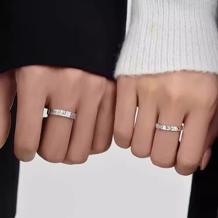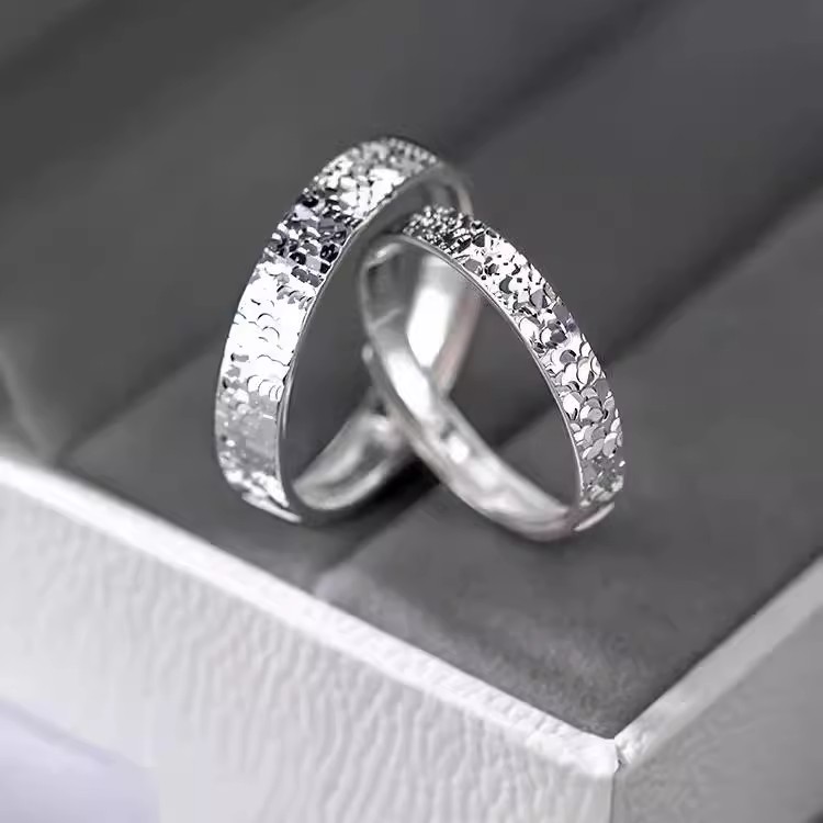 I Do铂金PT950碎冰冰戒指简约情侣对戒情人节男女戒指白金订婚戒