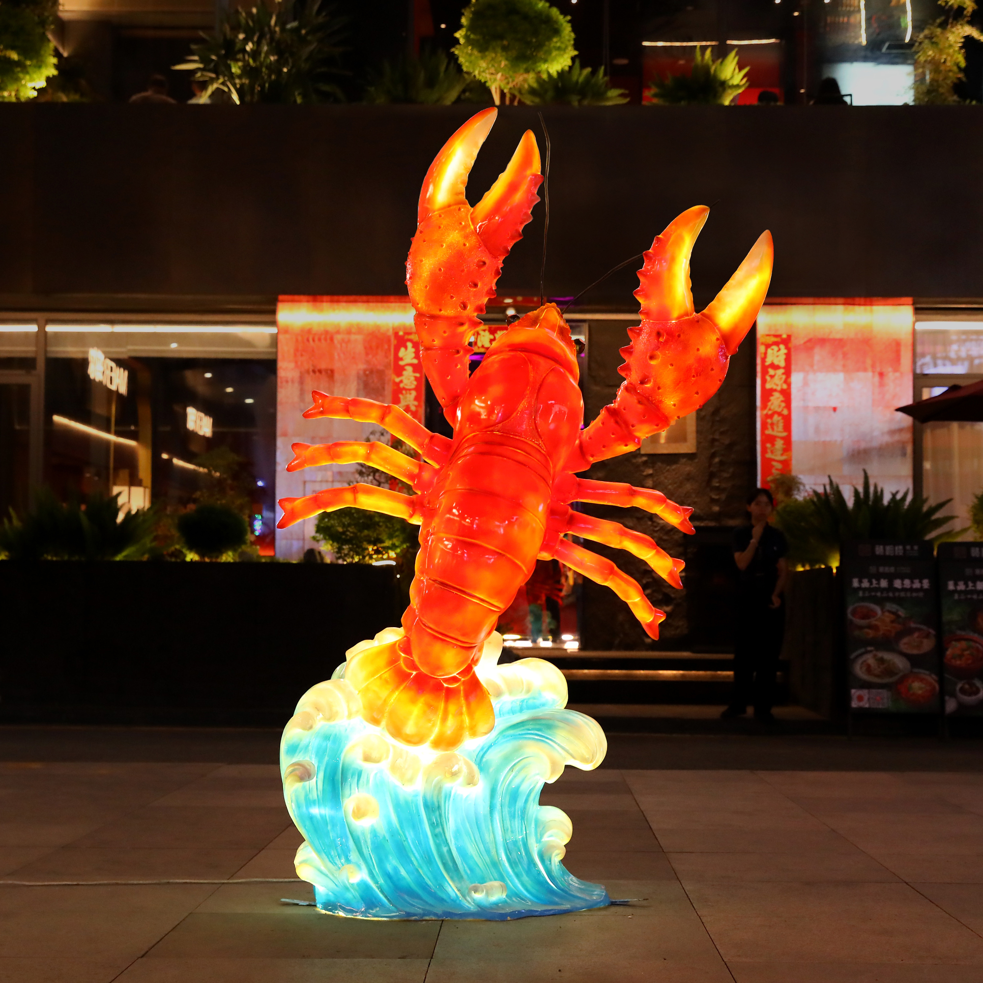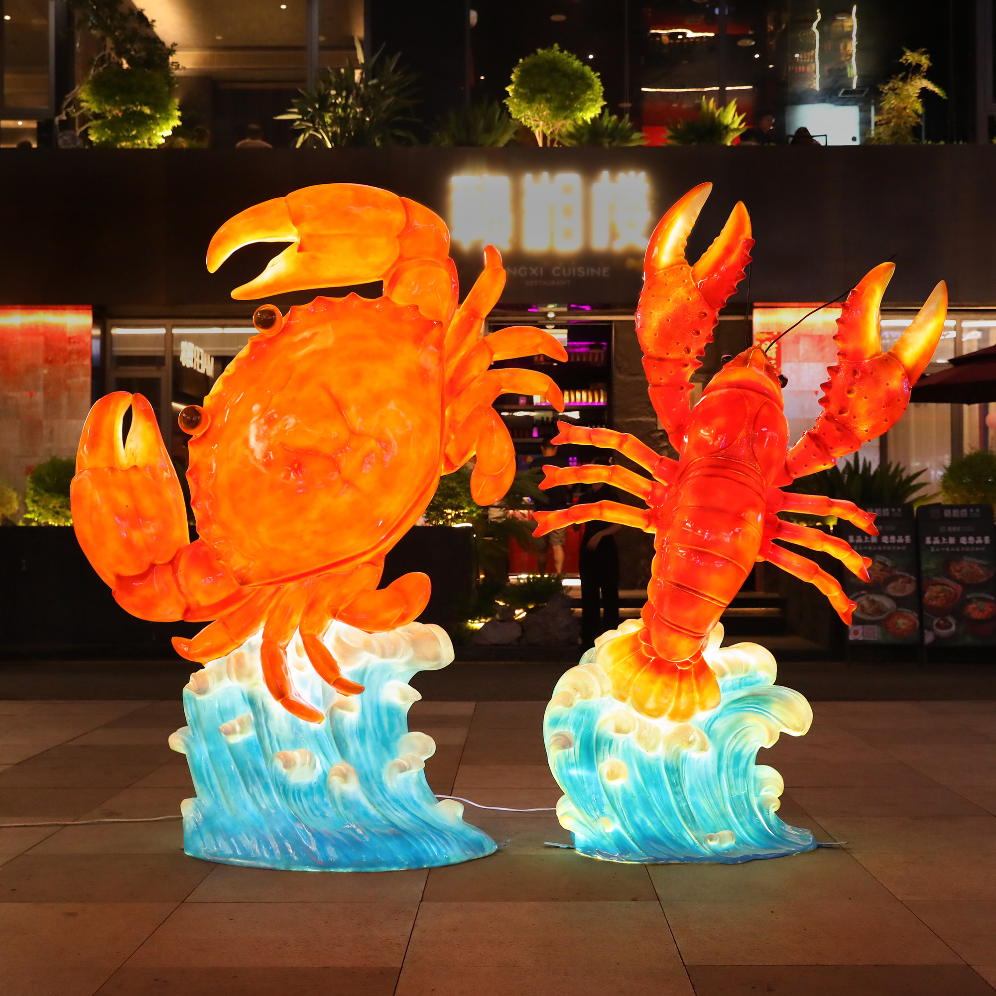 玻璃钢发光仿真鱼雕塑大闸蟹摆件餐厅海鲜大排档迎宾装饰烤串雕塑