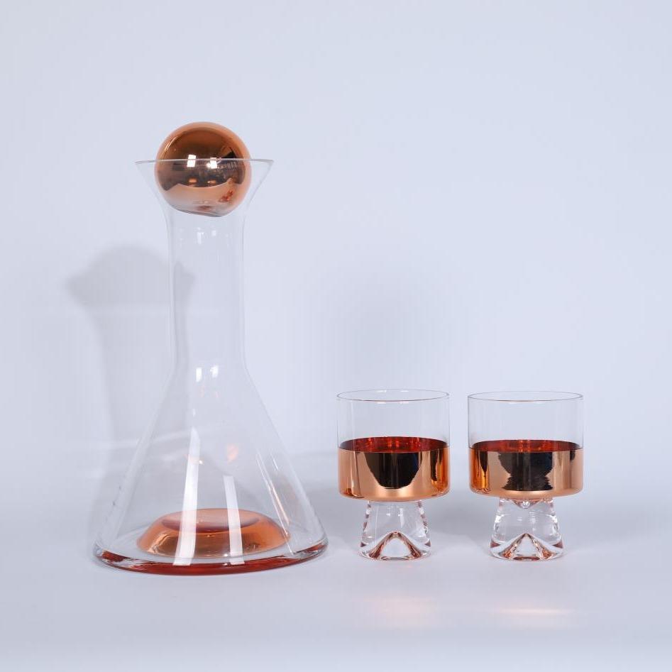 酒具北欧现代水晶玻璃金色灰色圆球形酒具售楼部样板间酒店醒酒器