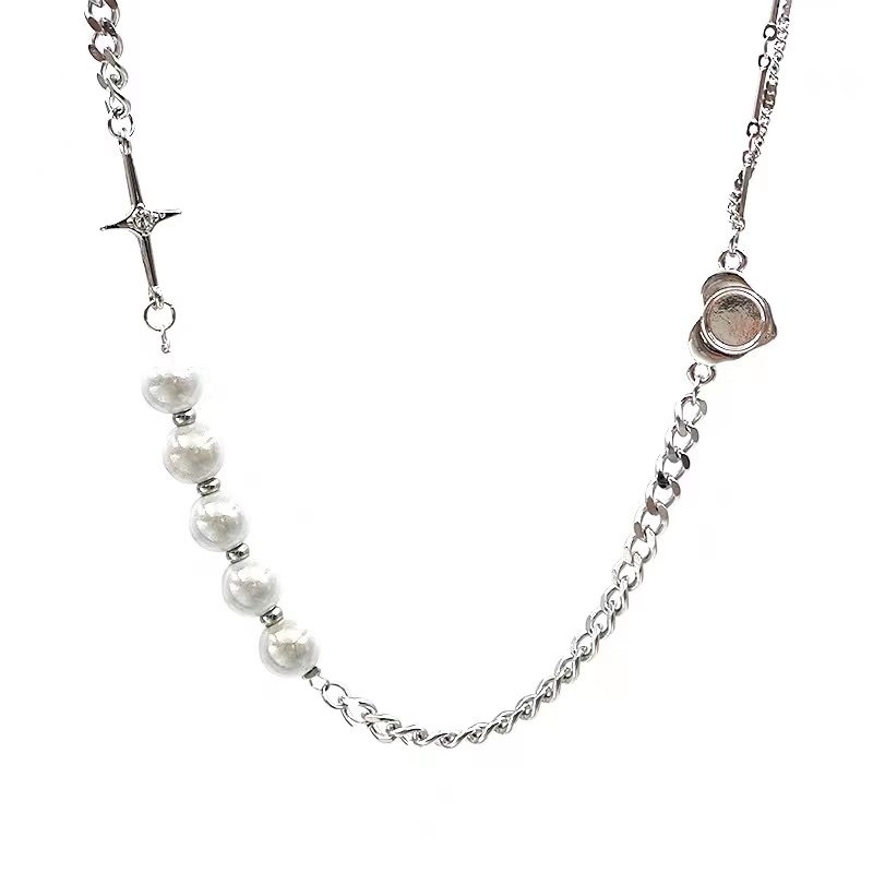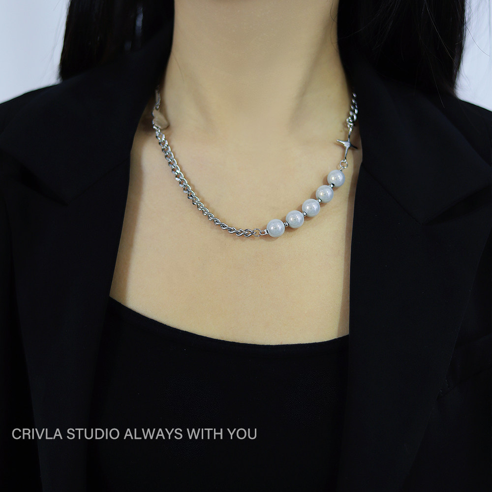 CRIVLA新款反光珍珠拼接爱心项链女ins小众设计感轻奢网红锁骨链