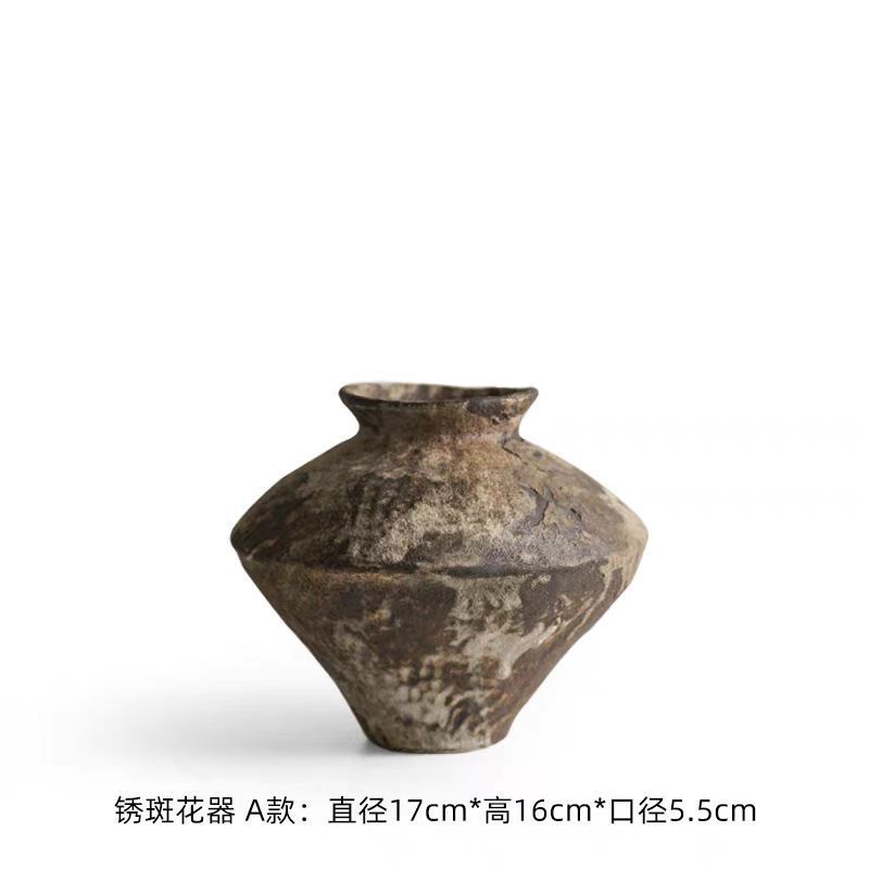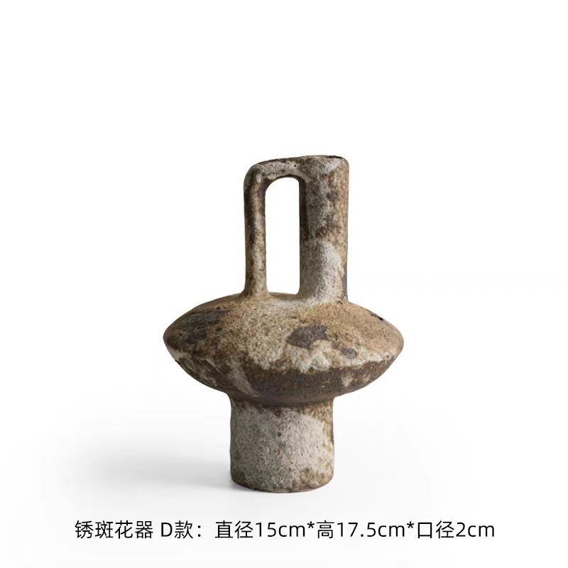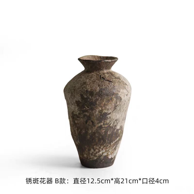 复古做旧粗陶陶瓷花瓶台面插花摆件侘寂风简约样板间民宿花器