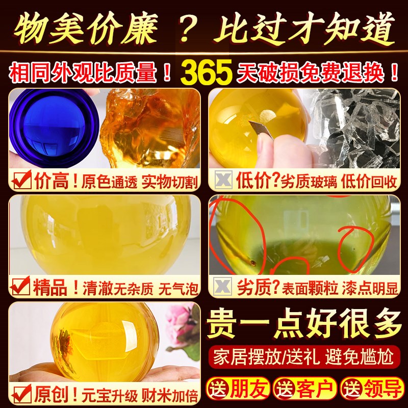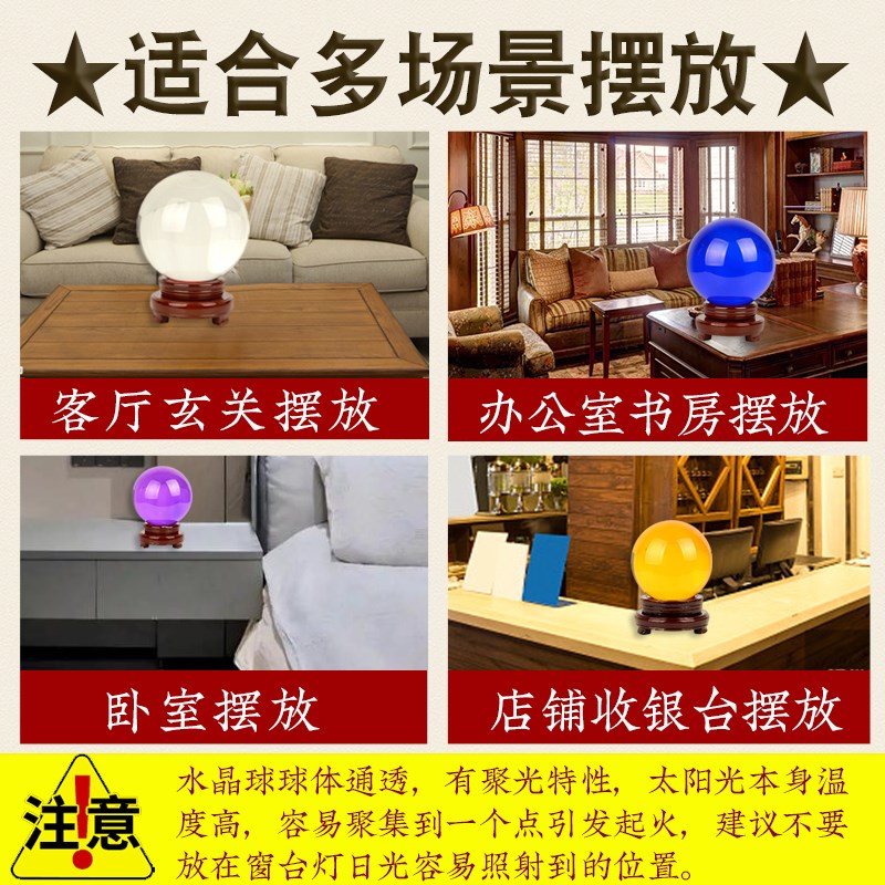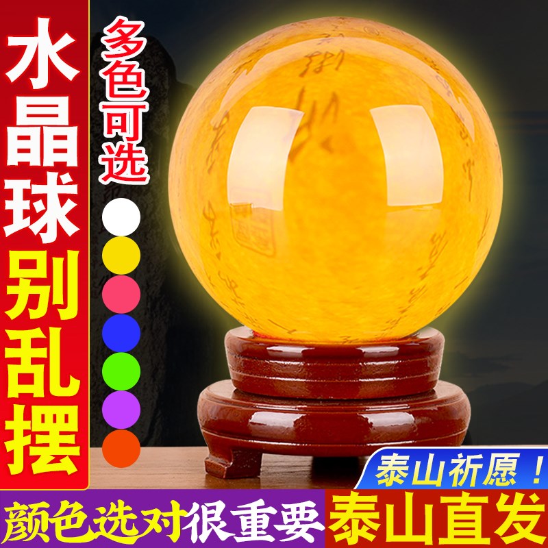 黄色水晶球摆件招财白紫红粉透明C圆球家居装饰品客厅小号开业摆