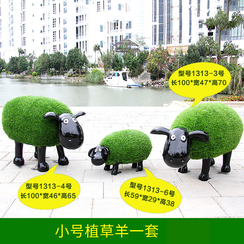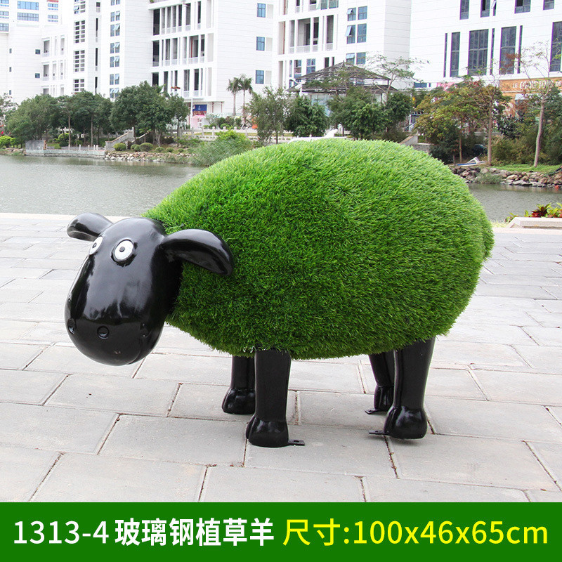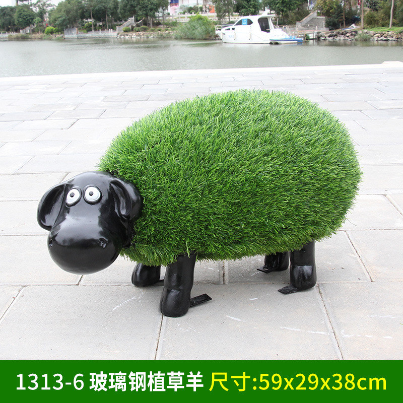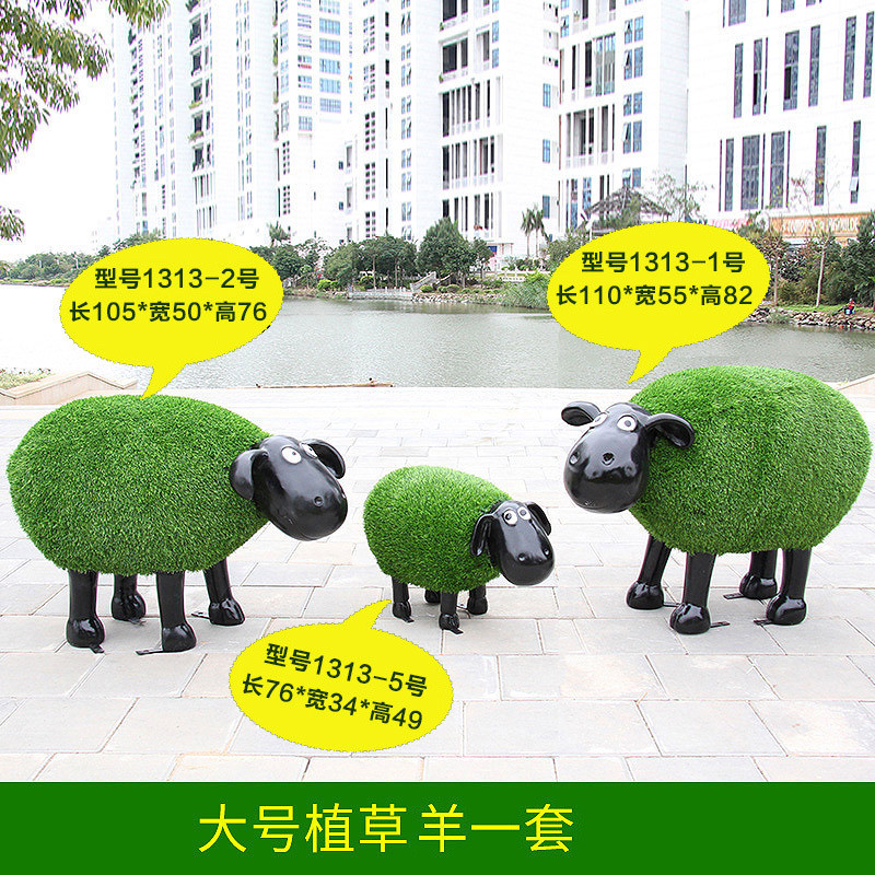 园林售楼部景观小品卡通动物植草羊装饰品户外庭院草地玻璃钢雕塑
