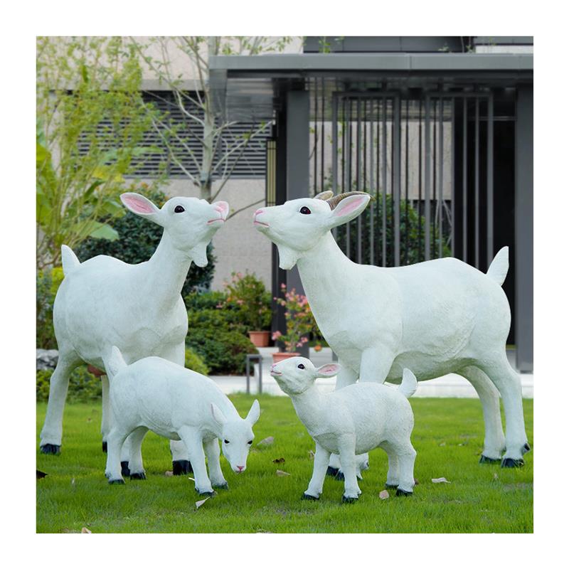 户外玻璃钢仿真山羊雕塑绵羊模型庭院饭店幼儿园草坪动物装饰摆件
