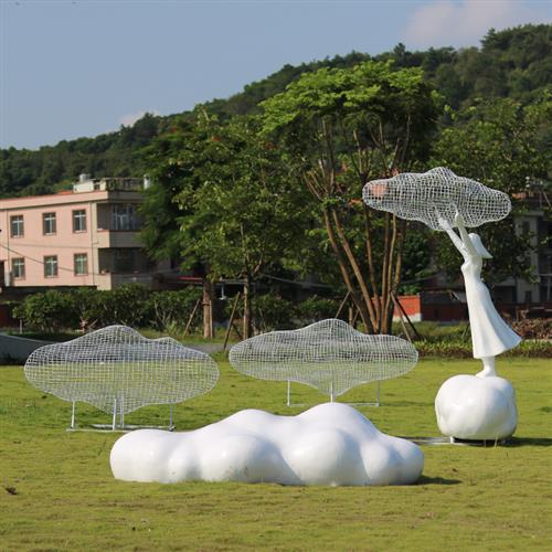 户外园林金属铁艺不锈钢镂空云朵玻璃钢抽象人物雕塑创意草坪摆件