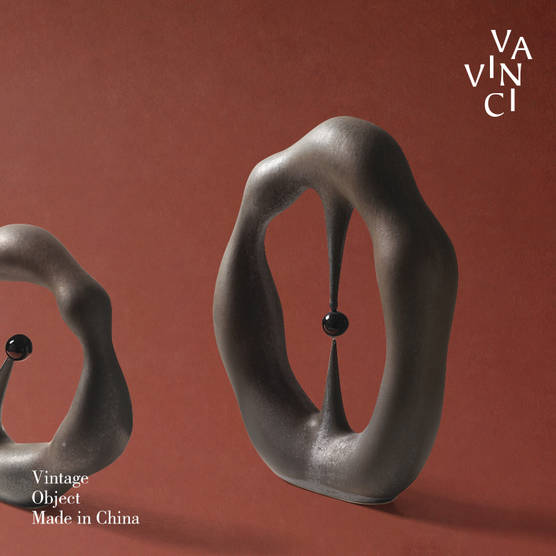 梵其北欧灰色创意抽象几何陶瓷摆件样板间客厅桌面工艺装饰品摆设