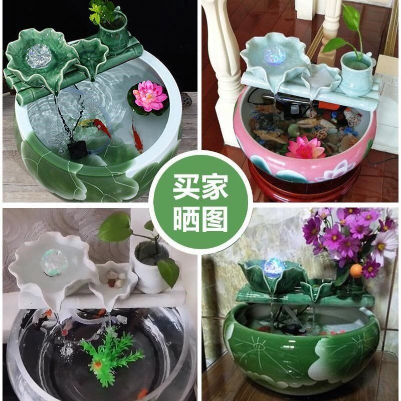 陶瓷鱼缸流水器家居客厅电视柜招财自动循环养鱼盆金鱼缸加湿摆件