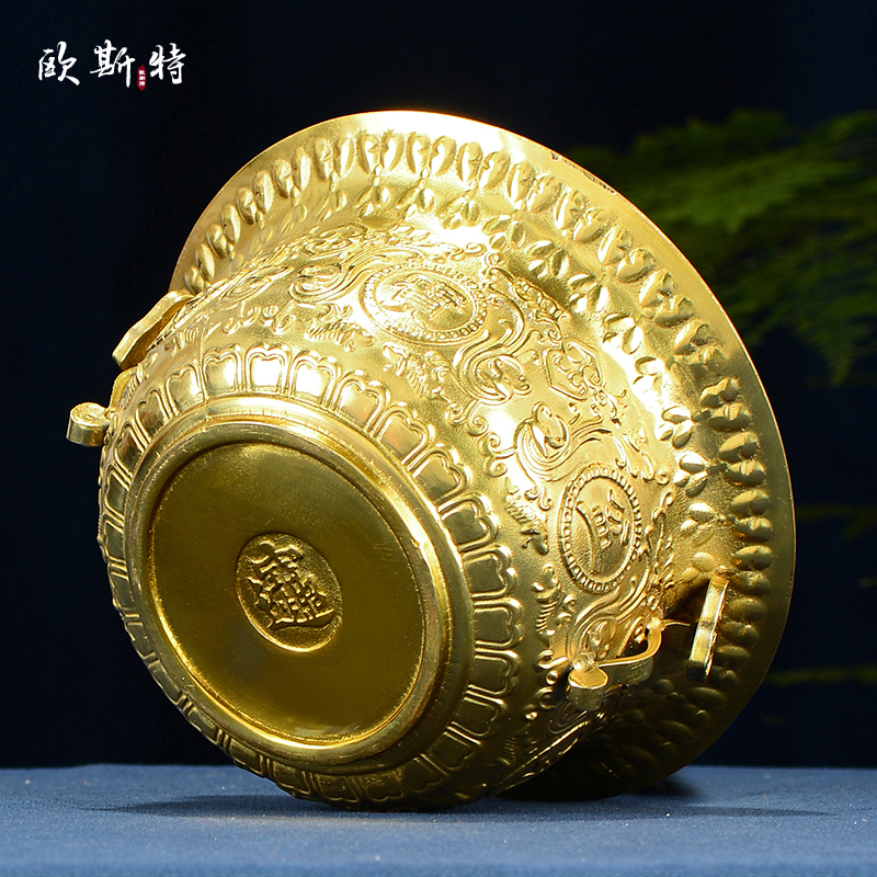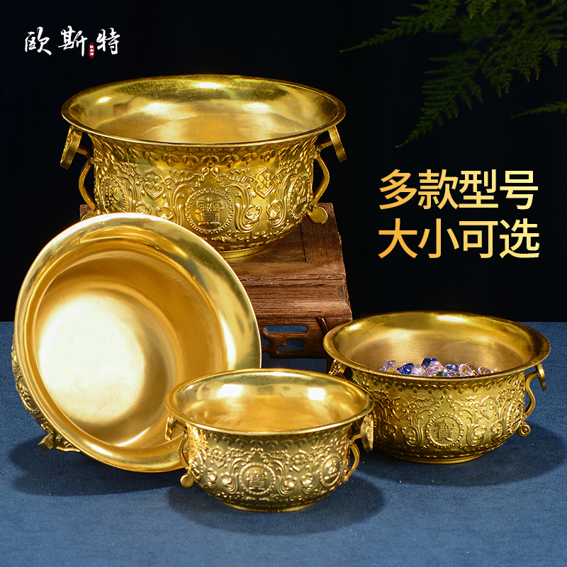 全铜如意聚宝盆摆件 家用米缸生财存钱铜盆 办公桌客厅玄关小摆件