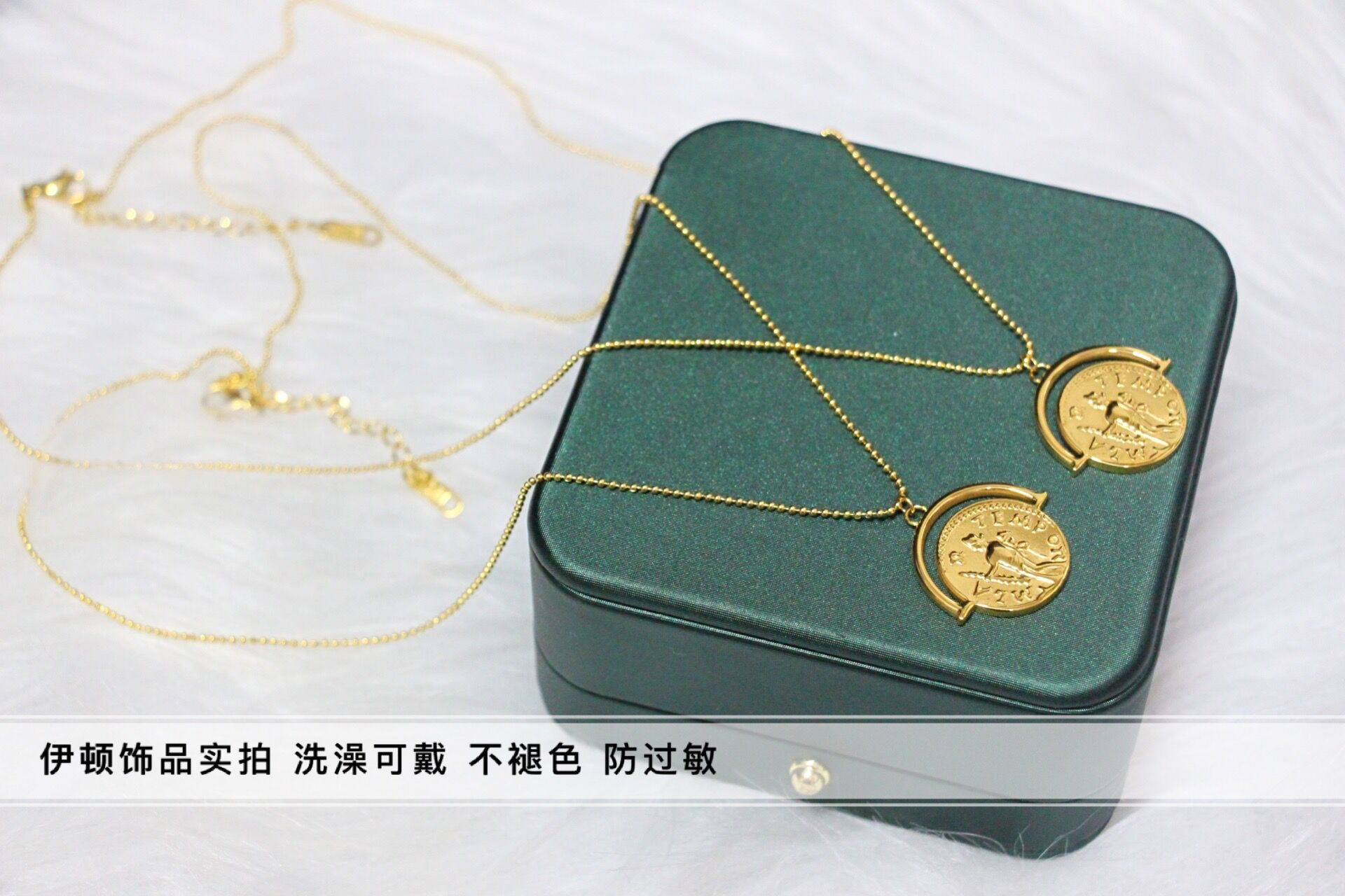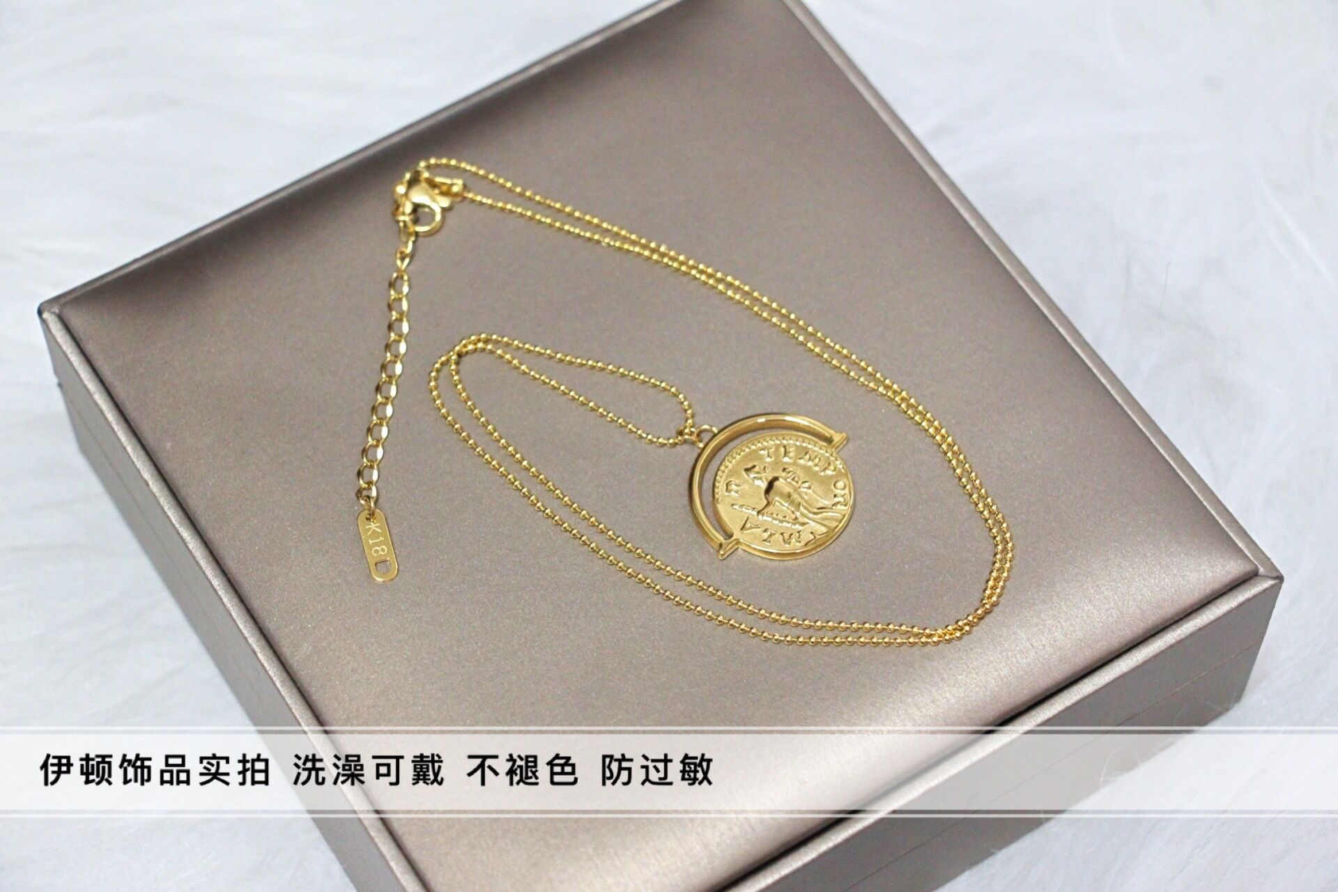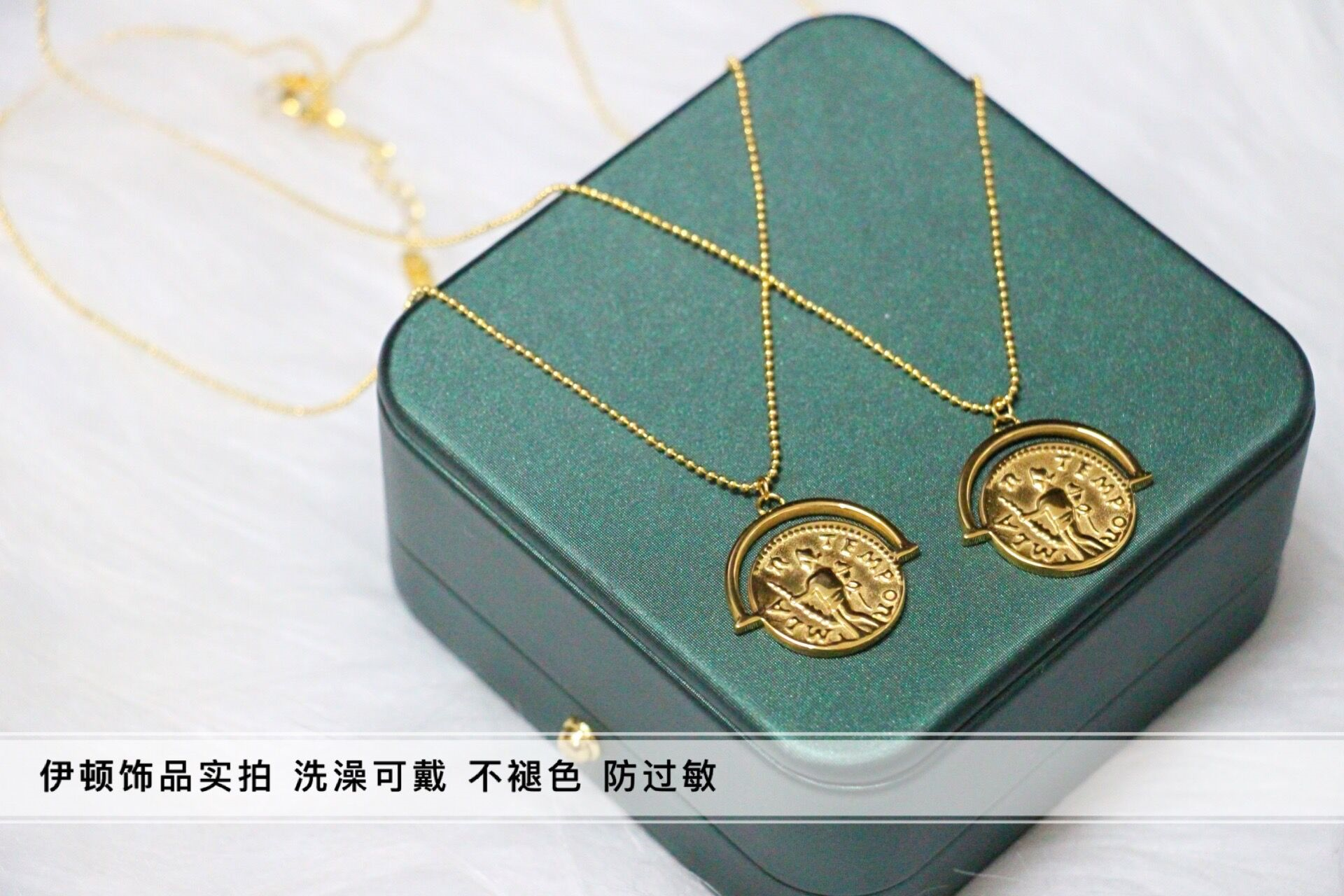 【洗澡不用摘】小众爆款气质复古天使罗马金币圆牌长款项链毛衣链