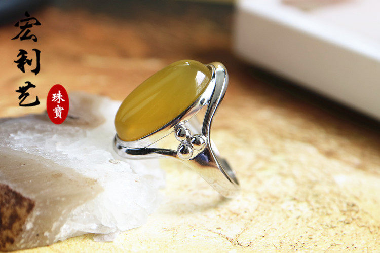 宏利925纯银戒指空托镶嵌松石琥珀11*19戒托蜜蜡银托定做开口戒指