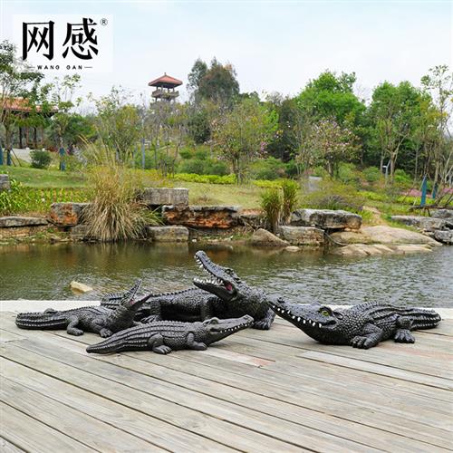 鳄鱼雕塑模型玻璃钢户外大型花园林水池景观小品装饰仿真动物摆件