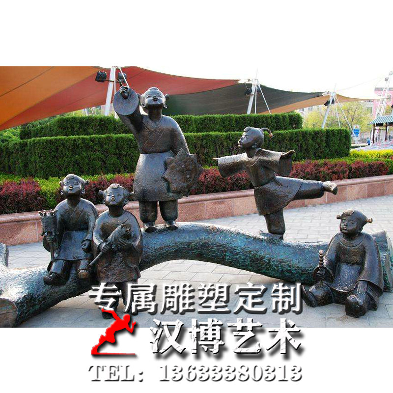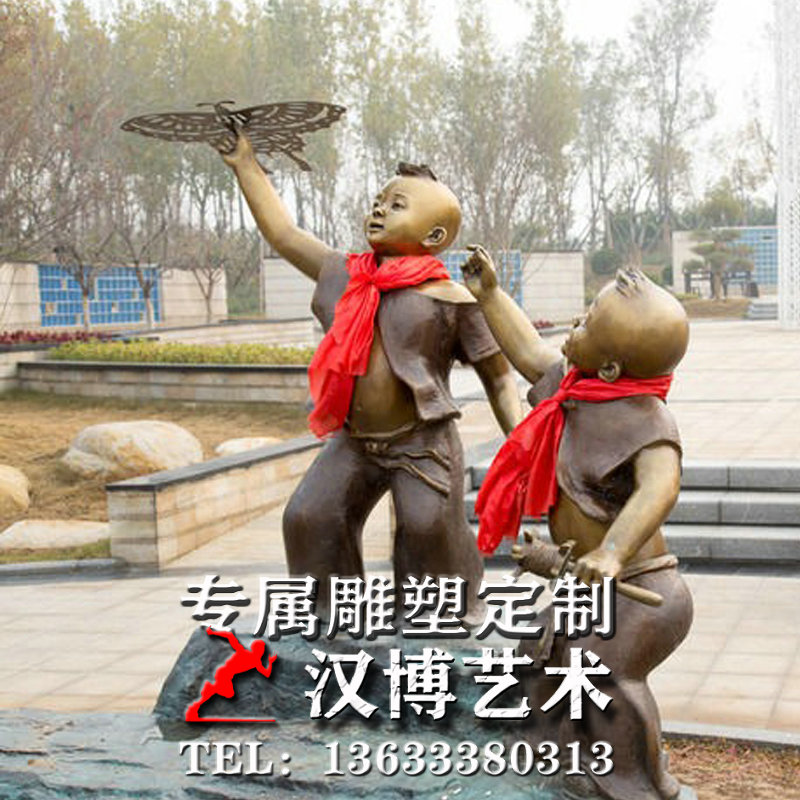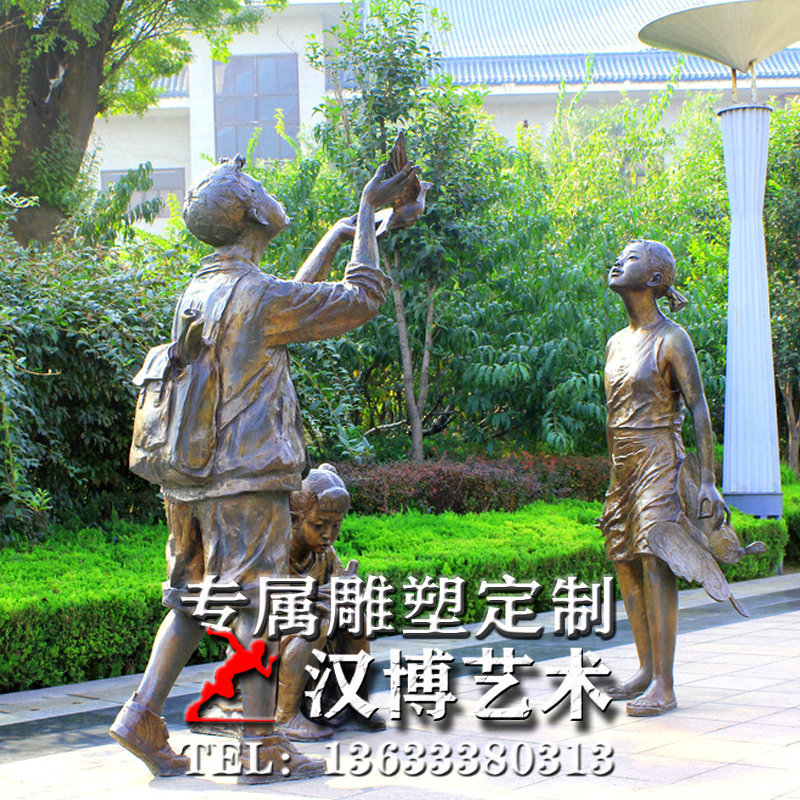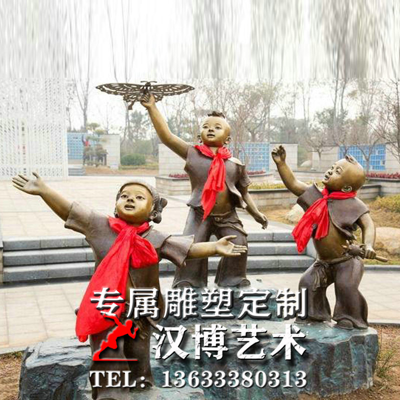 玻璃钢仿铜人物雕塑户外广场铸铜小孩玩耍嬉戏场景铜雕放风筝雕像