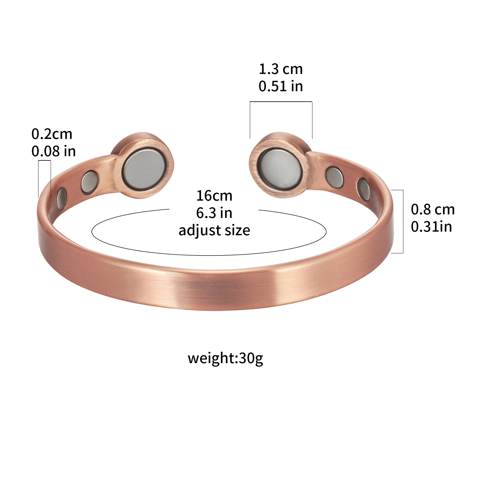 红铜磁性男女同款手镯,16cm铜手镯带2个大磁铁+4个小磁铁首饰