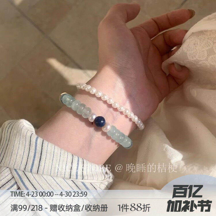 晚睡的桔梗「大西洋的风」精致蓝色天然石珍珠手链高级冷淡风手串