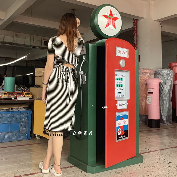 速发复古铁式加油机模型老皮怀旧摆件咖窗陈列道具酒吧橱啡厅装饰