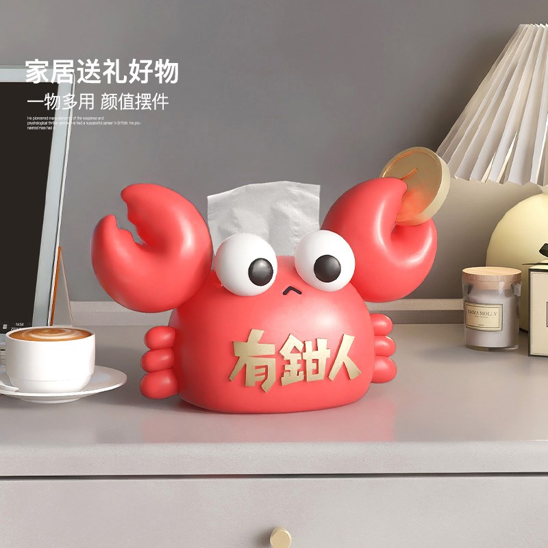 创意螃蟹纸巾盒摆件家q居饰品客厅抽纸盒家用茶几桌面餐巾纸收纳
