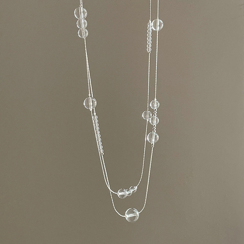 夏季简约百搭透明圆球串珠长款项链女小众轻奢时尚潮流颈链锁骨链