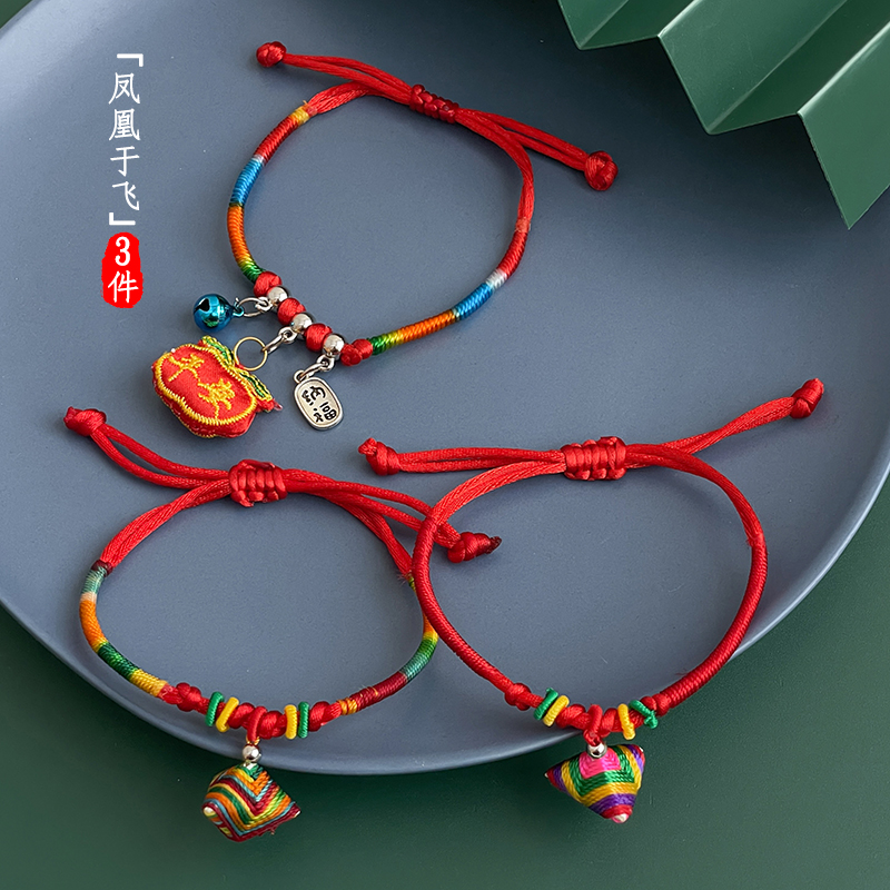 2024端午节五彩绳婴儿宝宝手工编织线七彩手绳儿童小粽子手链批发