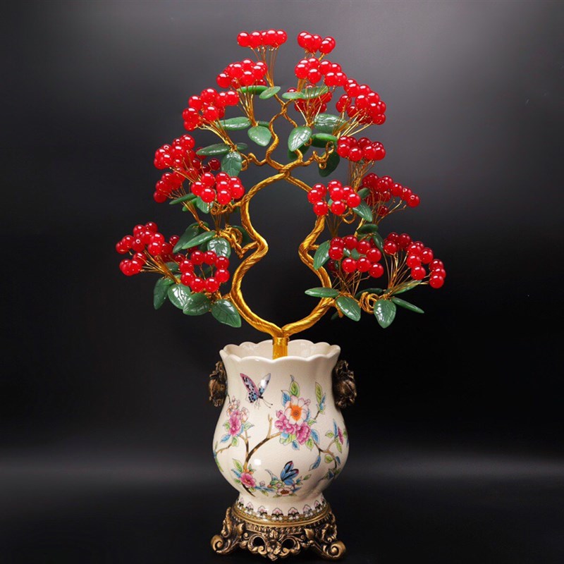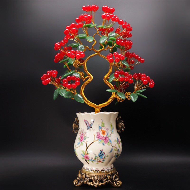 水晶发财树红玉髓摇钱树家居摆件客厅玄关酒柜店铺开业乔迁送礼品