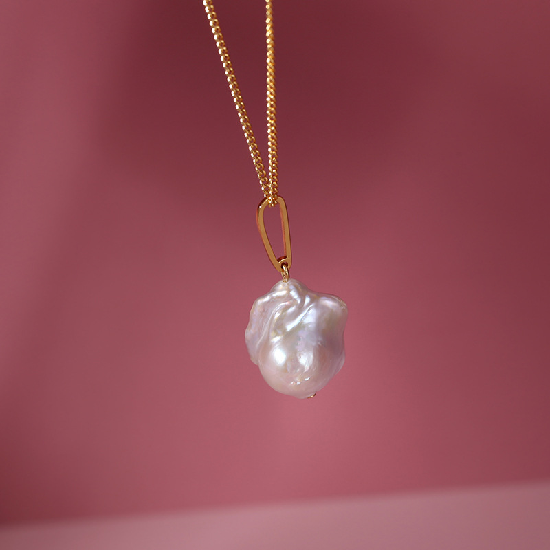 法式复古气质巴洛克异形珍珠坠项链女 简约大气金属感长款毛衣链