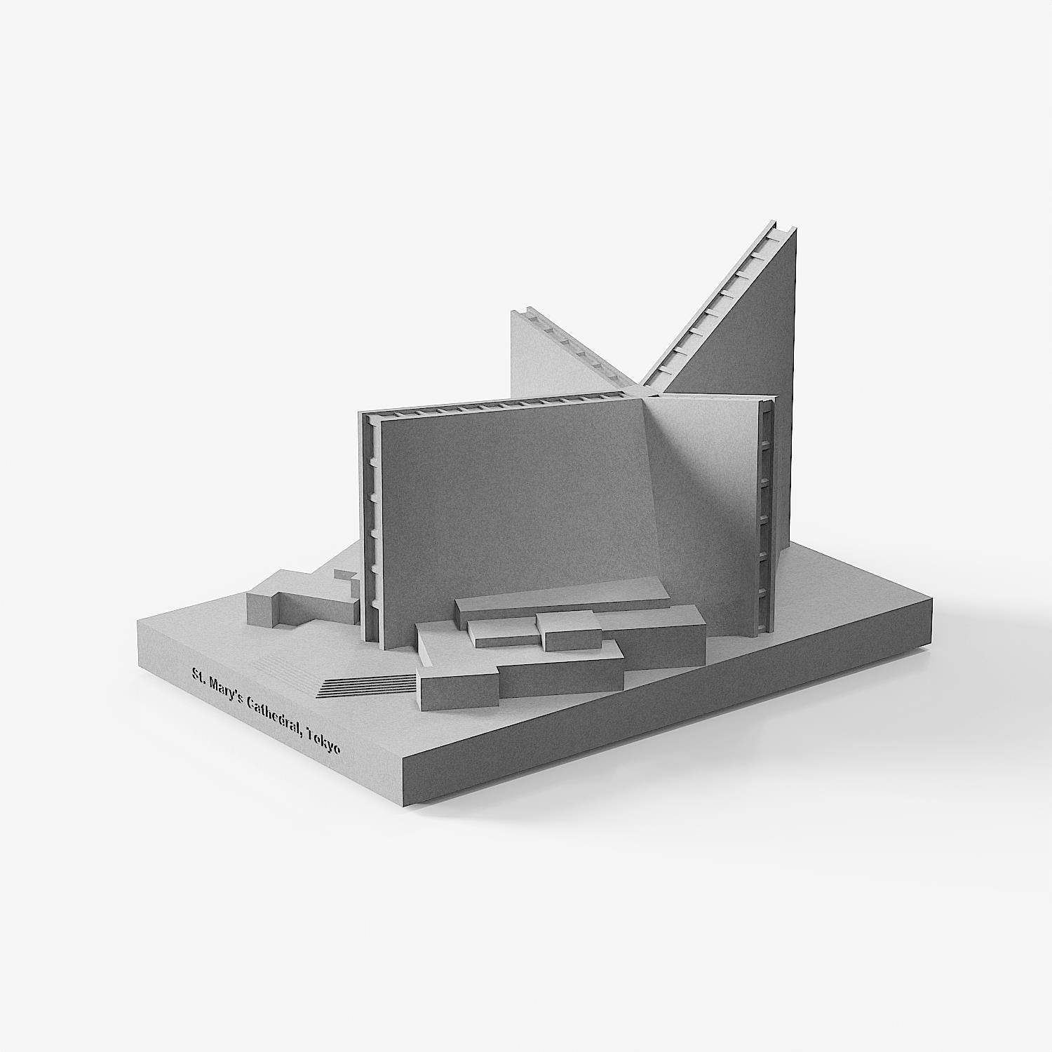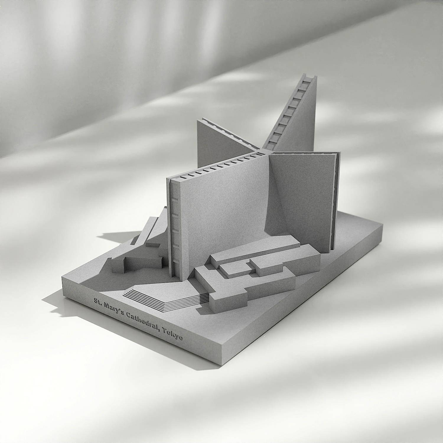 丹下健三圣玛丽大教堂|水泥建筑模型家居装饰办公桌面混凝土摆件