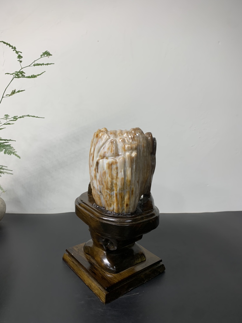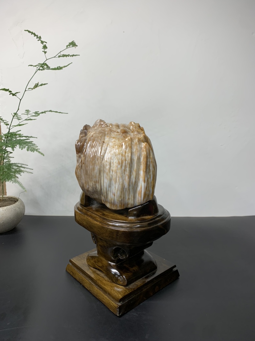 缅甸树化玉摆件总高26/高15.5/宽12/厚9.5厘米净重5.8斤送底座