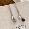 虎眼石水滴抽拉项链女2025新款秋冬轻奢小众设计感长款毛衣链配饰