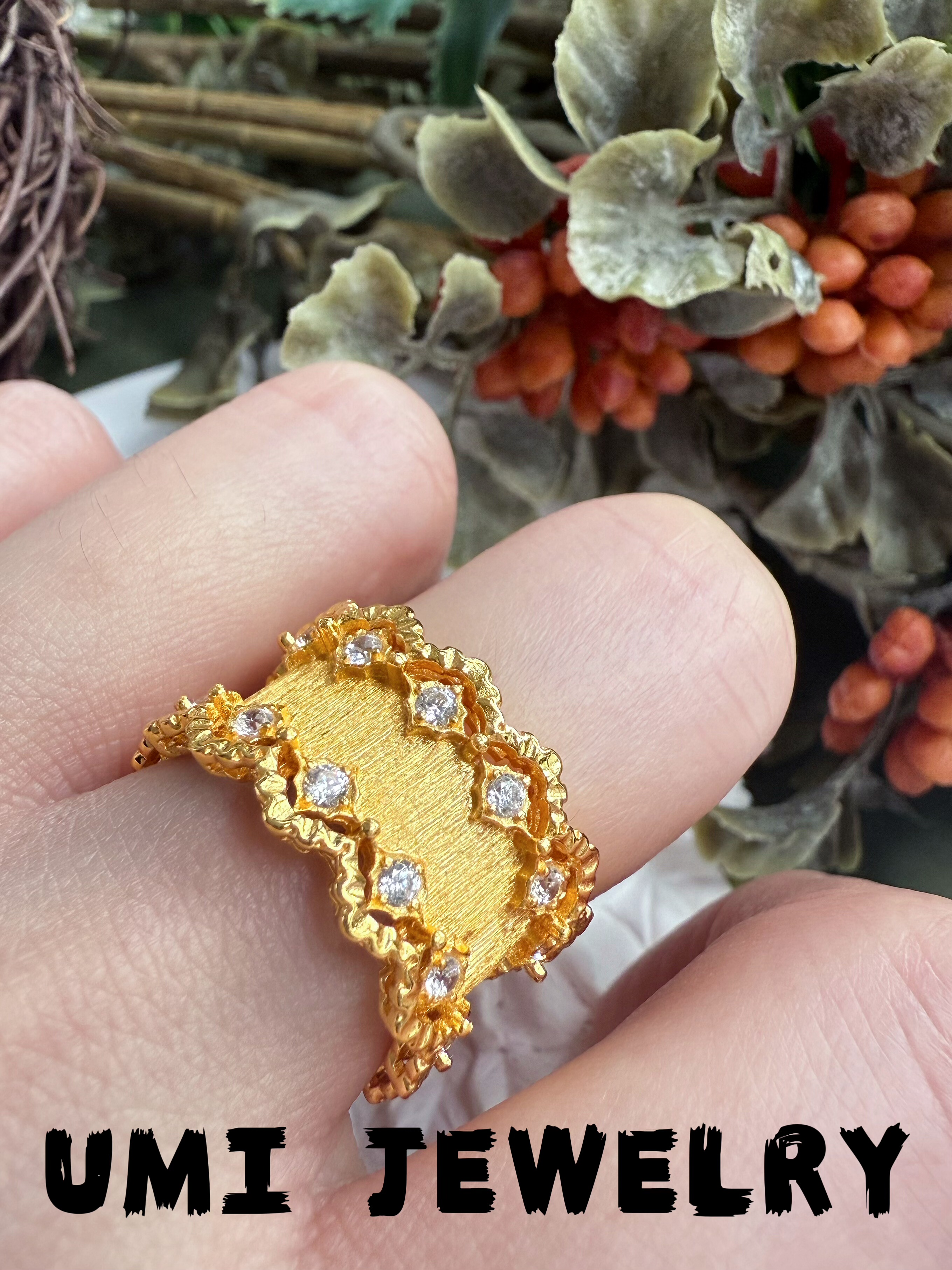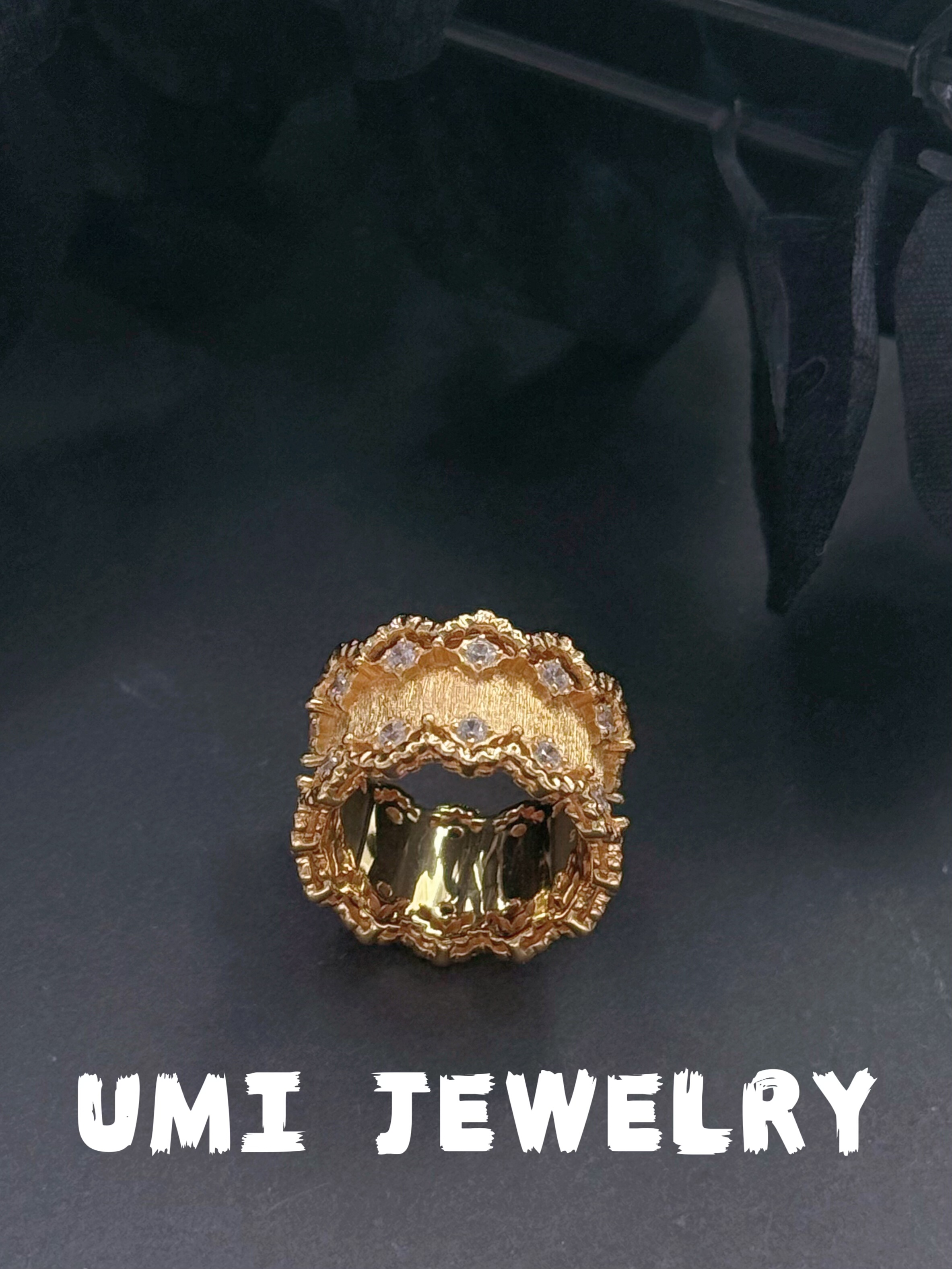 UMI【蕾丝】S925银镀k金·蕾丝花边拉丝宽版戒指小众高级感女戒