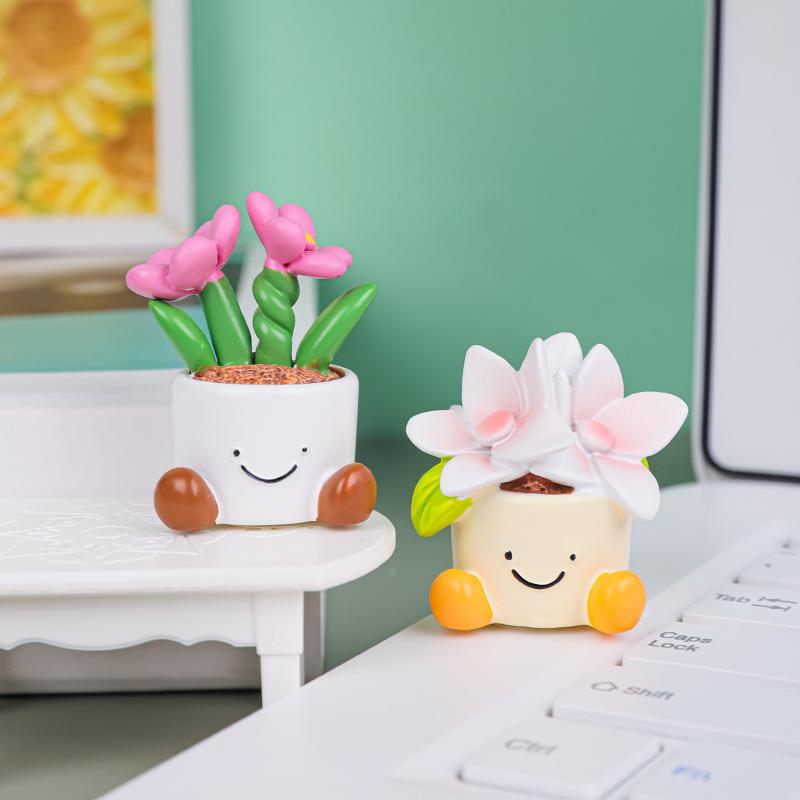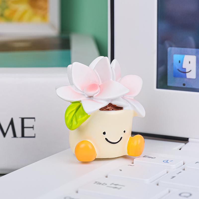 花盆小精灵可爱表情花盆盆栽花朵摆件树脂迷你桌面装饰小清新礼物