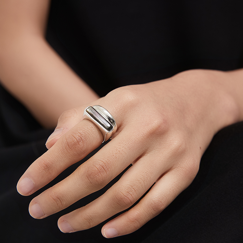 EWEST 新款黑蝶贝银戒指女925银设计方形食指戒中指戒小众尾戒