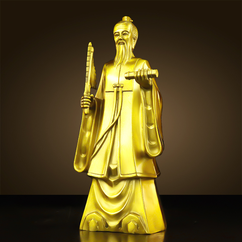 纯黄铜姜太公钓鱼摆件鱼缸姜子牙铜像姜太公在此百无禁忌家居饰品