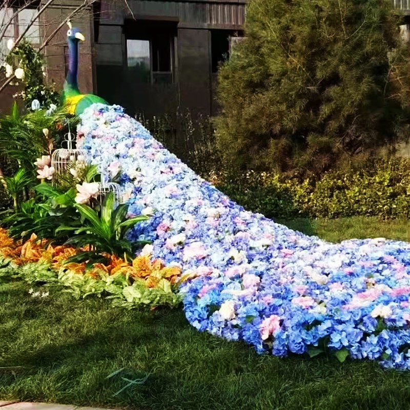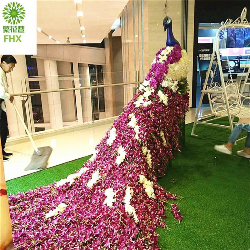 仿真花艺孔雀插花摆件婚庆房地产商场展台布置橱窗装饰造景工艺品